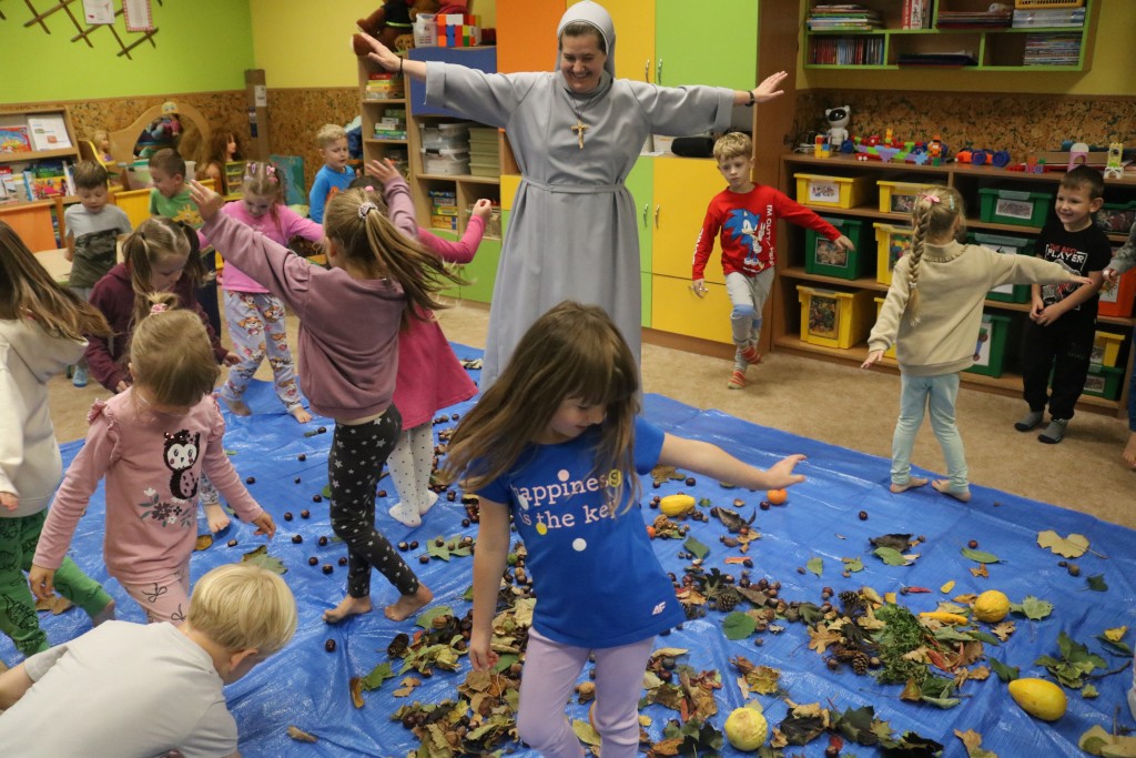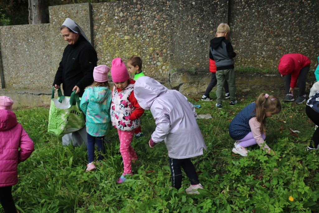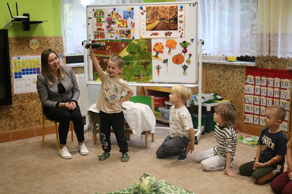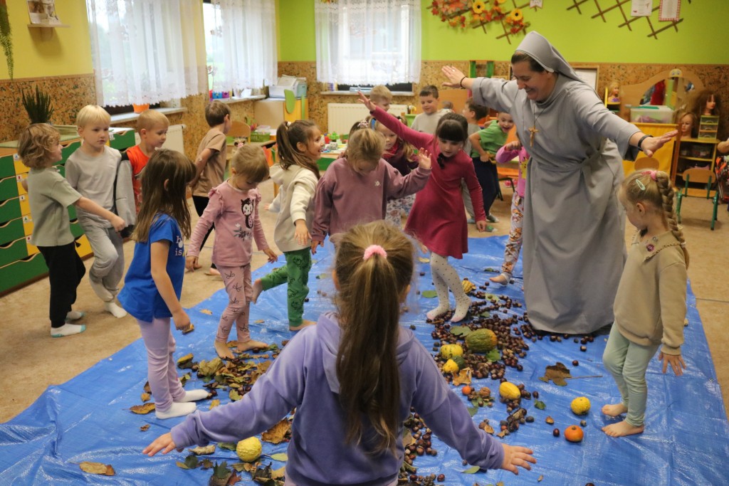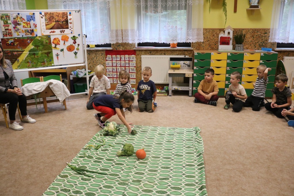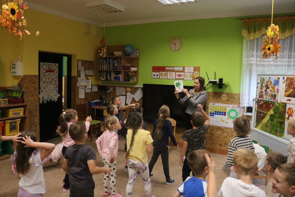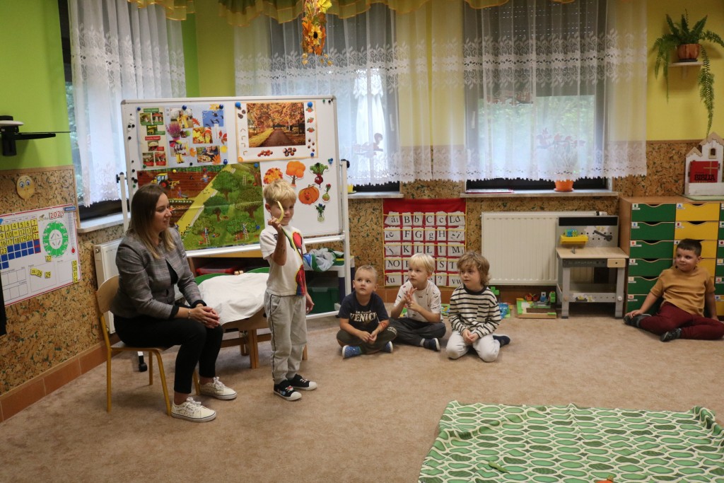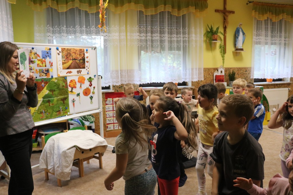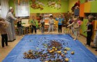 Nasze Przedszkolaki postanowiły udać się na spacer w celu poszukiwania oznak jesieni oraz zebrania jej darów w postaci liści i kasztanów.