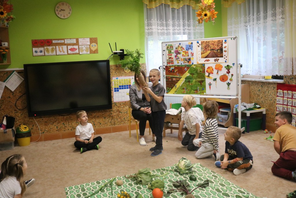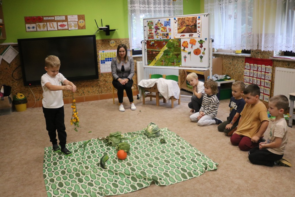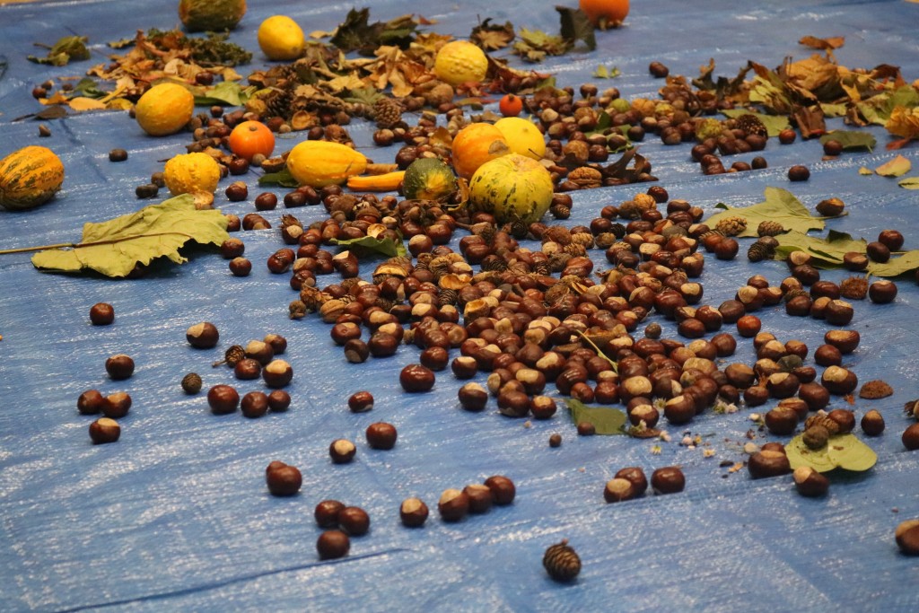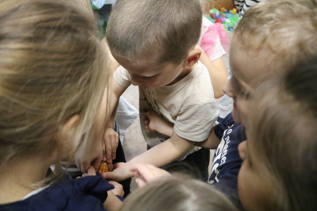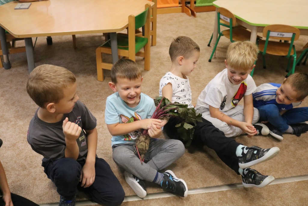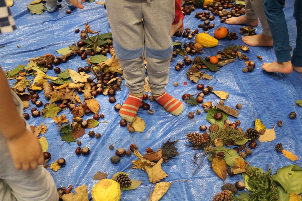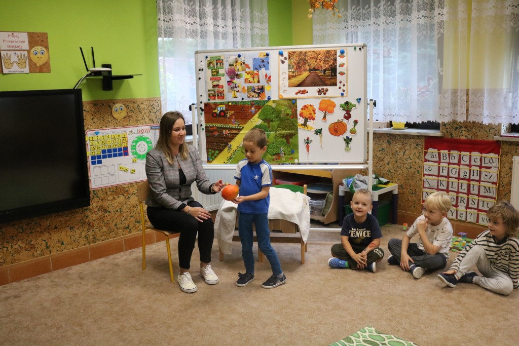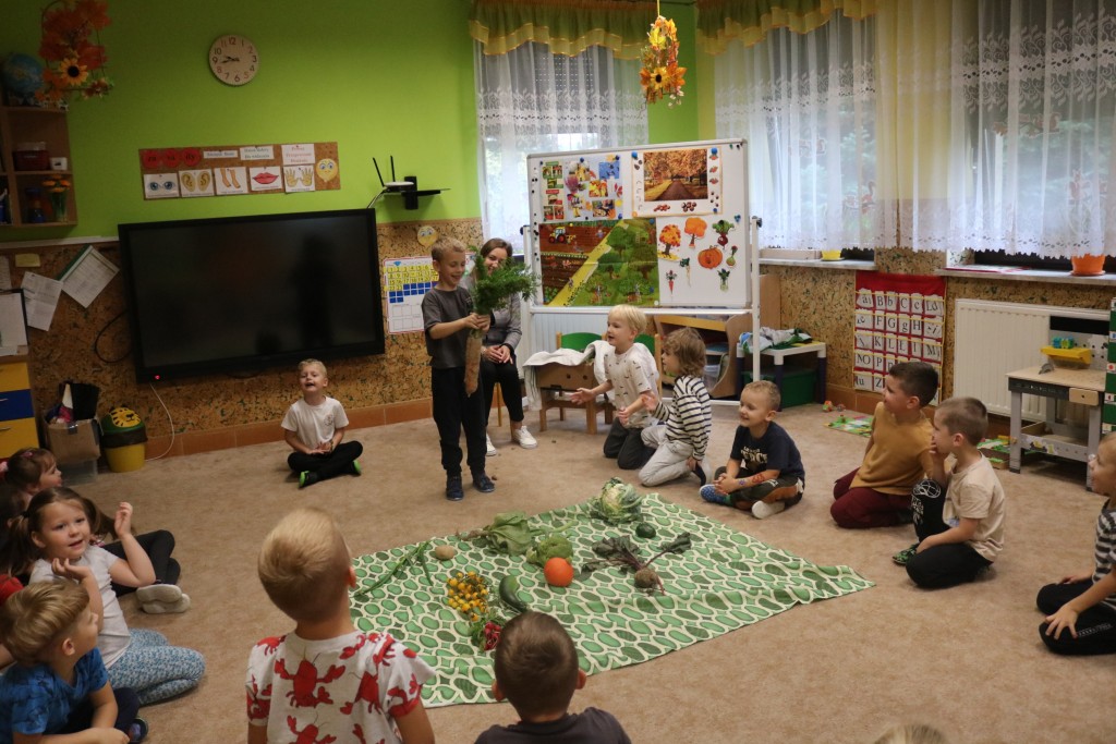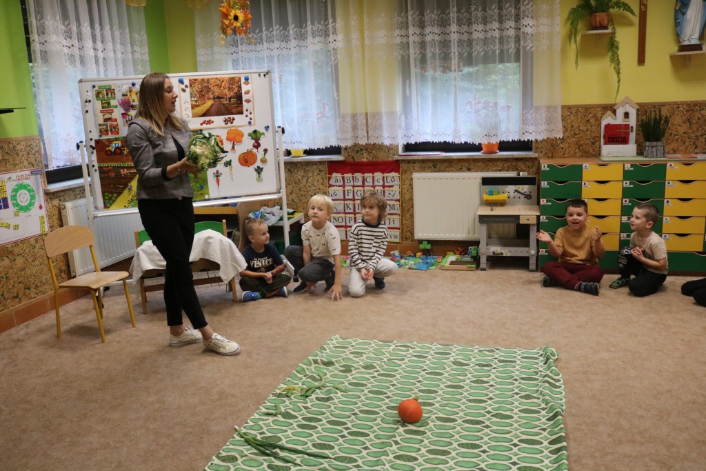 Nasze Przedszkolaki postanowiły udać się na spacer w celu poszukiwania oznak jesieni oraz zebrania jej darów w postaci liści i kasztanów.