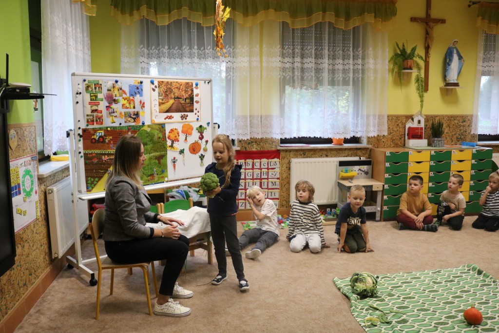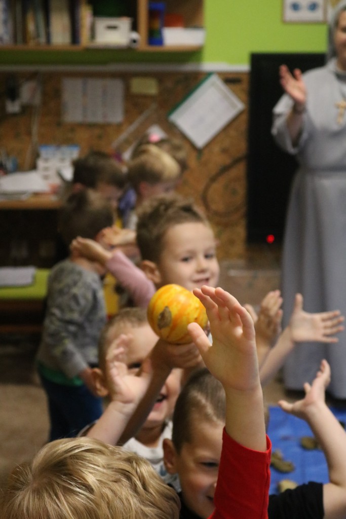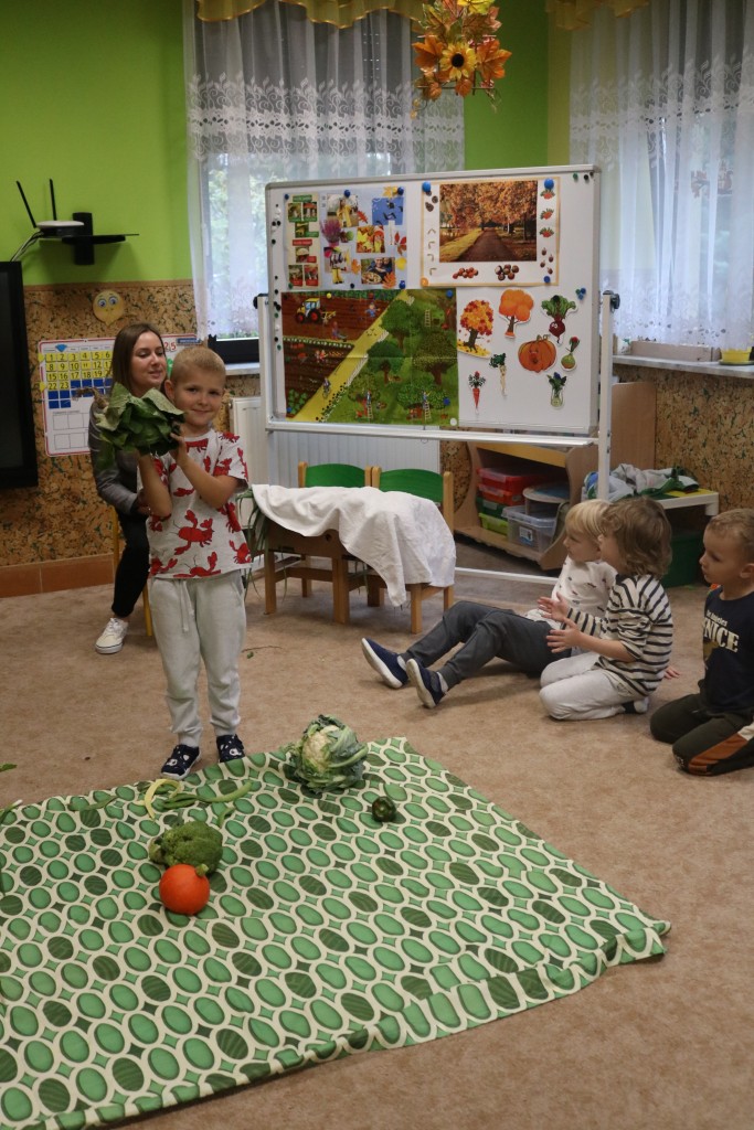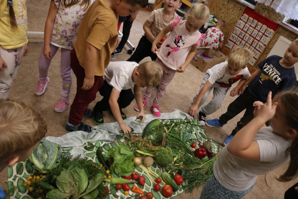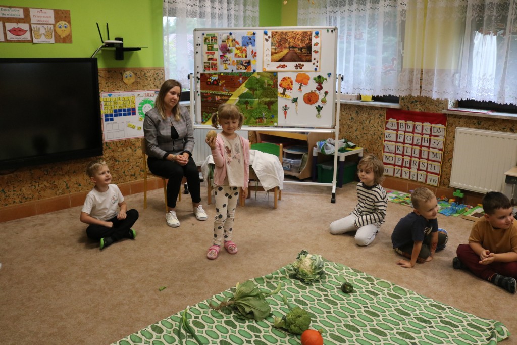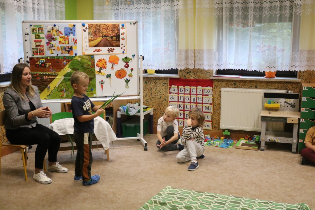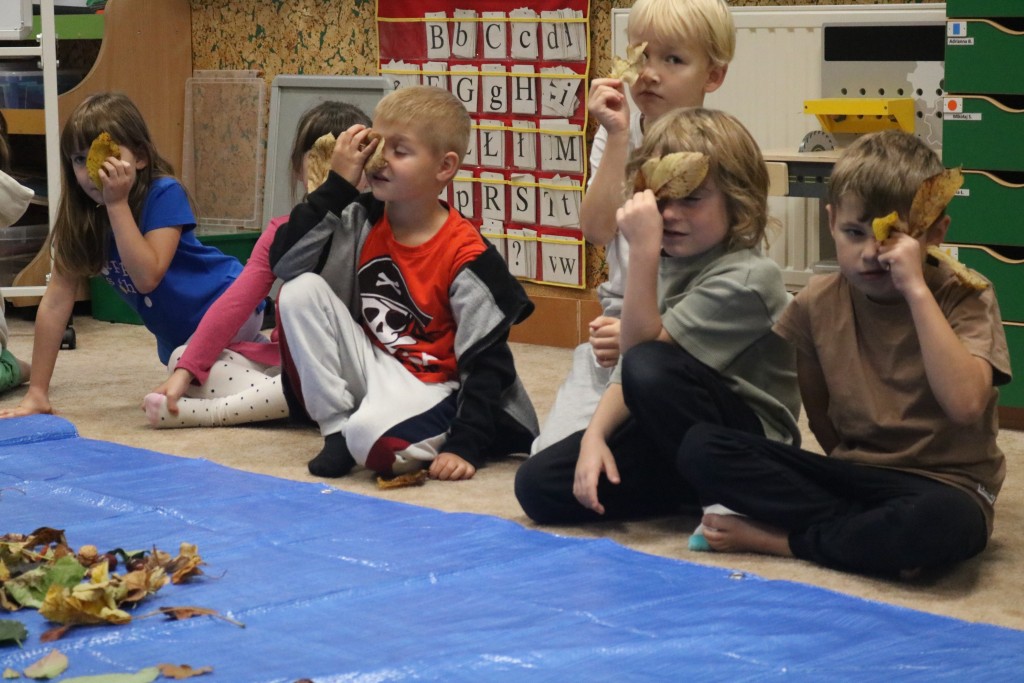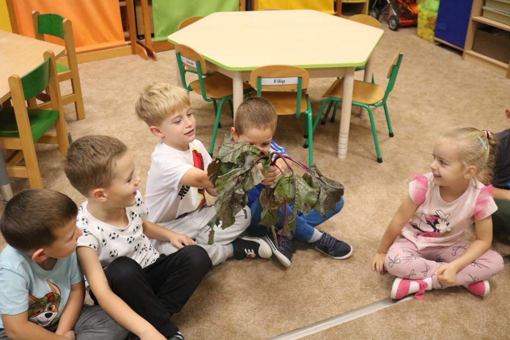 Nasze Przedszkolaki postanowiły udać się na spacer w celu poszukiwania oznak jesieni oraz zebrania jej darów w postaci liści i kasztanów.